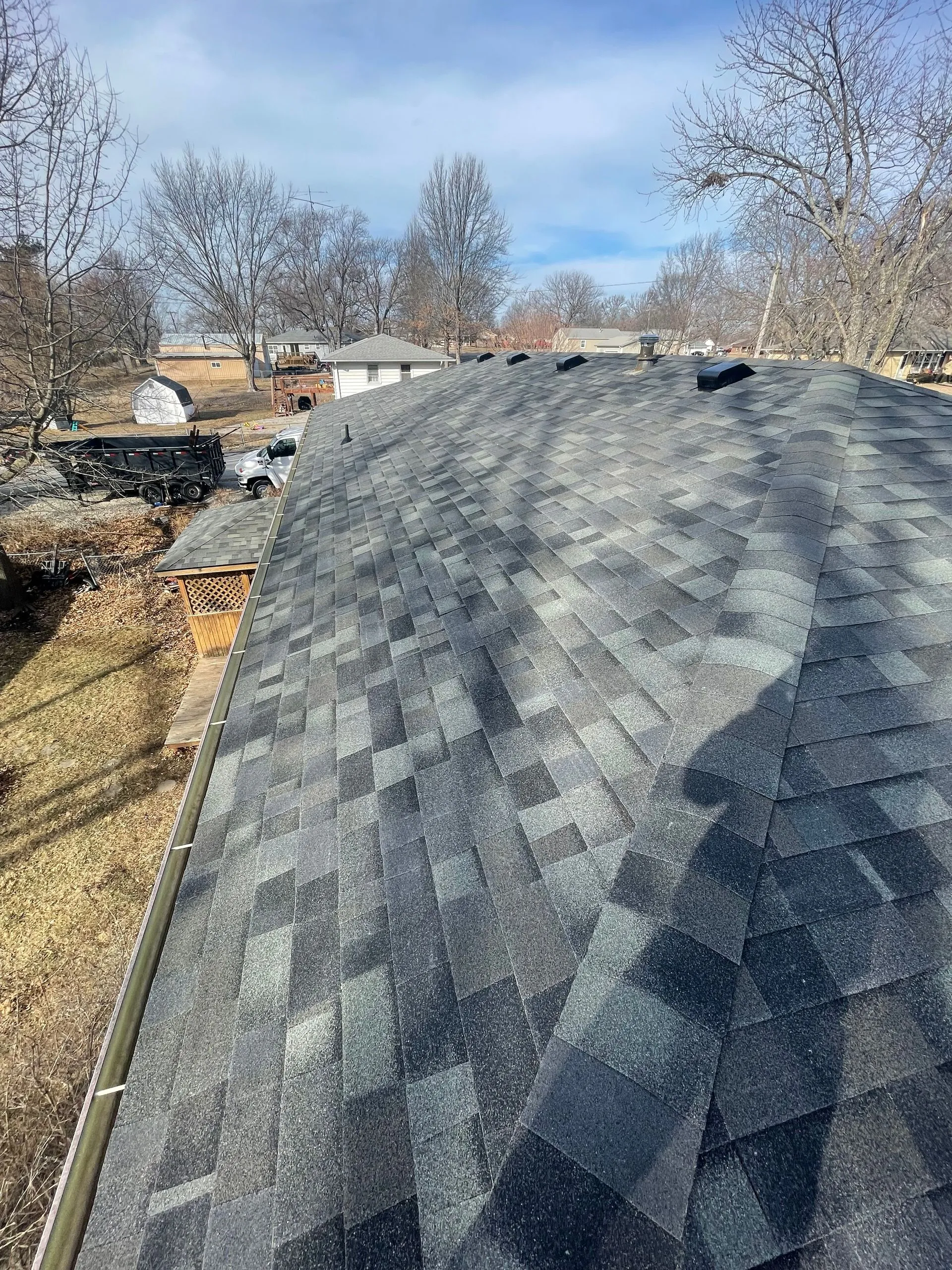 Our Cloud9 crew had the pleasurer of servicing another client in the Lawson Mo Area. This particular client had watched us replace his neighbors roof in the year previous, and when he started to have some issues with his roof he didn’t hesitate to give us a call! We got a full scope of work from his Insurance Carrier and we were off to the races. Provided our client with color options, and some informational literature so he could better understand the product he was about the have installed on his HOME. He chose a Malarkey Storm Grey Laminated Asphalt Shingle. With the purchase of this Malarkey product it has upgraded this client to a Class3 Hail Impact roofing system. We correlated with the client for the best possible Install date and got it knocked out! Ran an extensive clean up and left the property looking BRAND NEW!